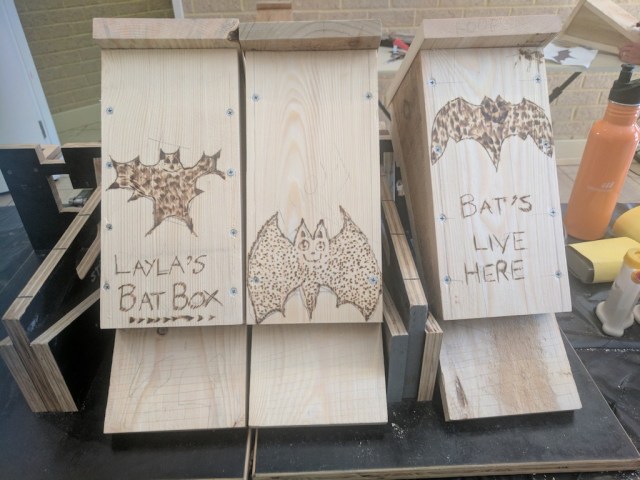 Another exciting bat box workshop was conducted on the last weekend gone. This time something new was added. Now I have Pyrography pens in action. These allow you to burn patterns or just your name onto the finished bat boxes. The participants loved them. It adds a personal touch to your creation.