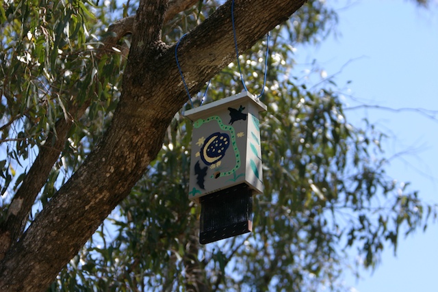 The bats are taking up the boxes on a regular basis now. Two boxes had 28 bats in them. It took them a year but they found one of the sand-filled bat tubes. Another has been added just recently.At least six were in there making themselves comfortable. They also have started using the “Coffee stop” boxes. These are only short stay homes to roost in. Just like humans like to socialise and have a coffee somewhere that’s what the bats like. Not to have coffee of course…..